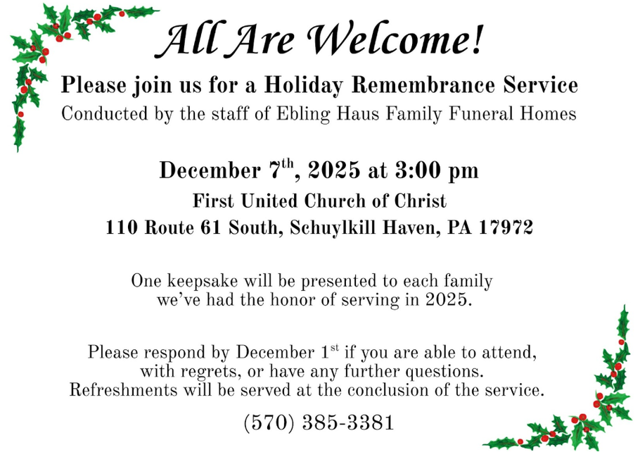 Geschwindt Stabingas Ebling Funeral Home & On-site Crematory, Ebling Stabingas Funeral Home & Lord Ebling Haus Funeral Home & Crematory proudly serve Schuylkill Haven, Cressona, Pottsville and all of Schuylkill County, Pa and the following (but not limited to) communities: