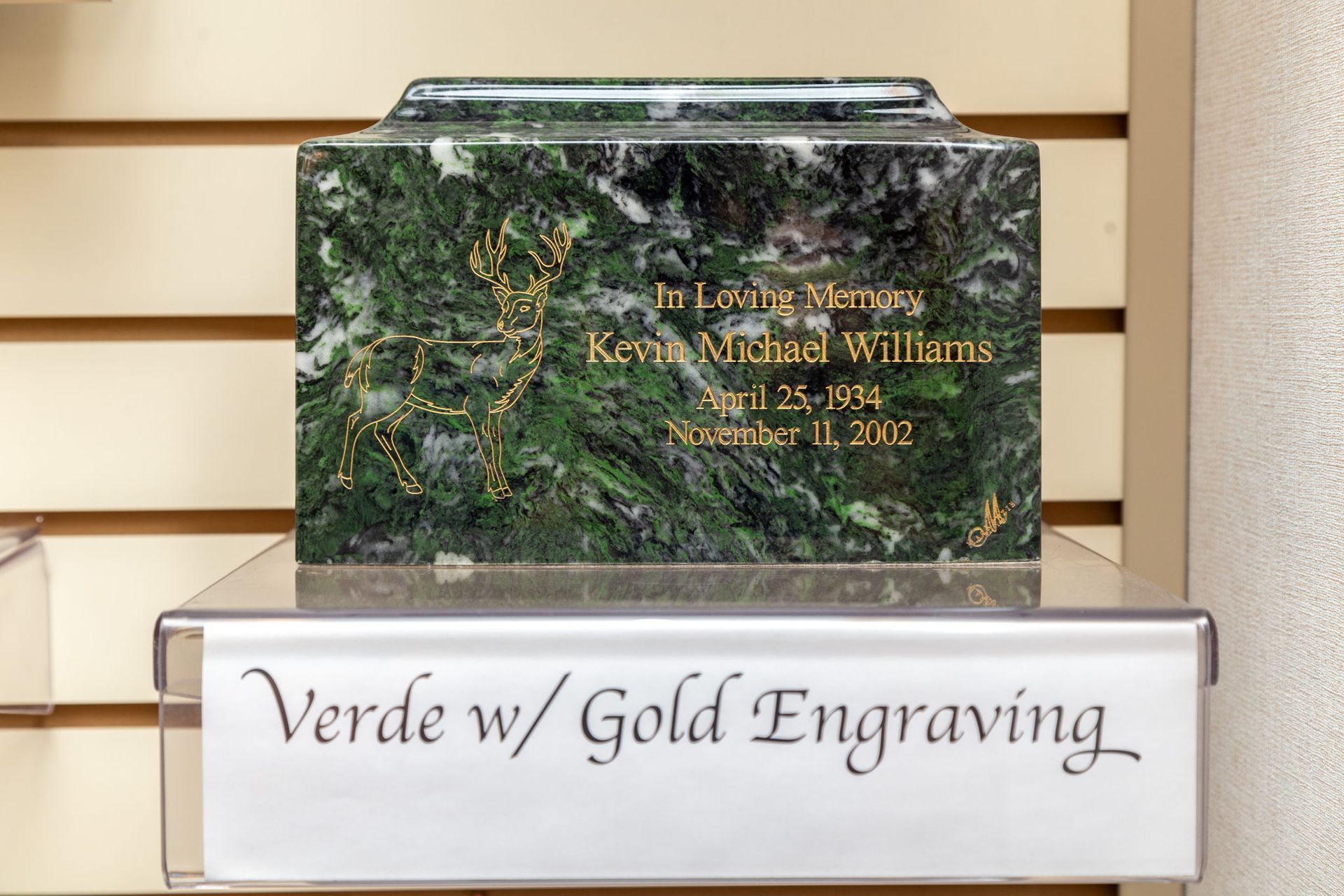 Engraving of Name & Dates - Engraving of a name and dates of birth and death adds a personal touch to most bronze, stainless steel, hardwood or marble urns.